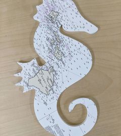 5.25" high Sea Horse with various charts. These are ready to hang as is or for your crafting projects. Contact us for wholesale prices.