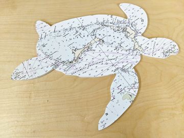 14" x 11.5" Sea Turtle shape with Bahama chart. These are ready to hang as is or for your crafting projects. Contact us for wholesale prices.